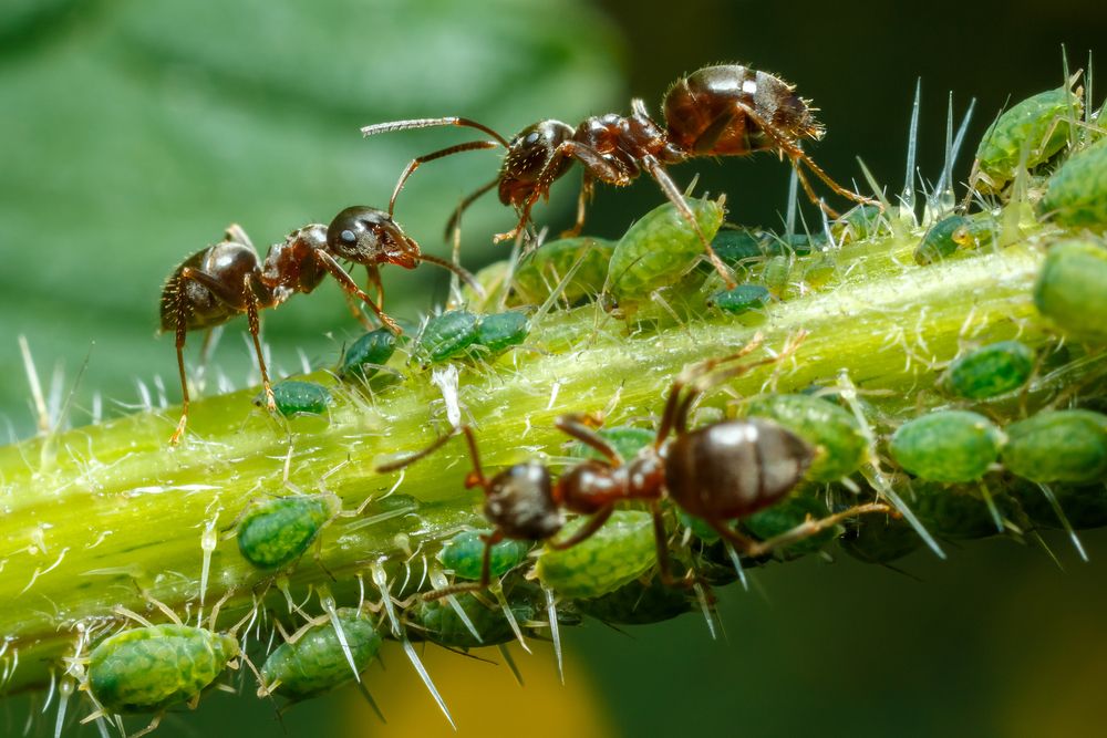 А вот другой пример. Это муравьи, которые защищают тлю. Зачем? Всё очень просто. Тля выделяет падь (на простом языке - какушки, продукты своей жизнедеятельности). А муравьи их радостно включают в свой рацион питания.